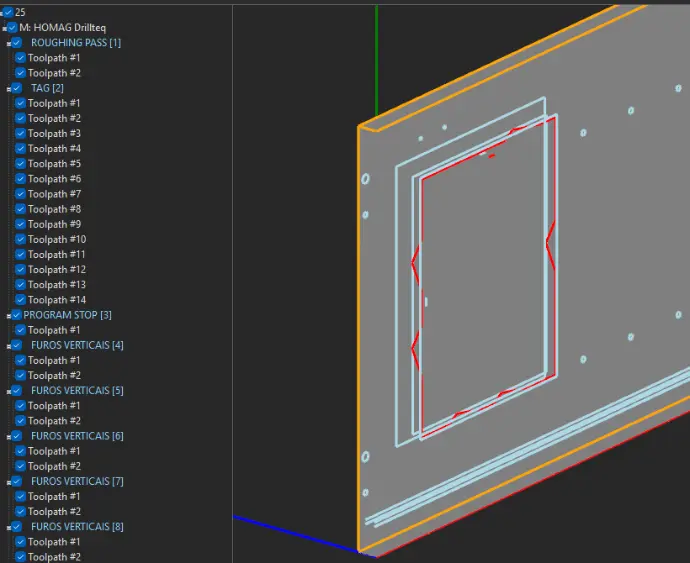 Temos várias estratégias automáticas que garantem que as peças com maquinações passantes são devidamente tratadas. Podemos configurar TAGS e POCKETS em função da medida da geometria a eliminar