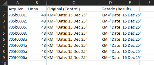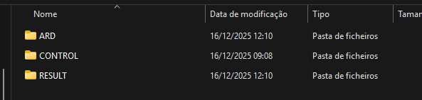 Os ficheiros da pasta ARD vão ser gerados na pasta RESULT e comparados com o seu homônimo da pasta CONTROL