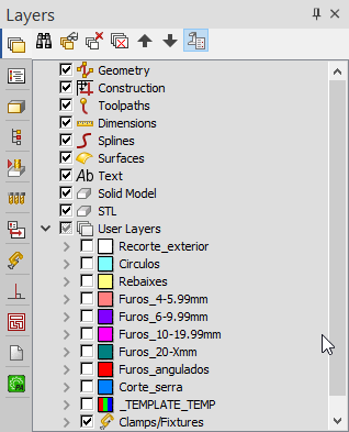 Abrir um ficheiro novo do ALPHACAM e vamos adicionar layers com nomes e cores. Assim saberemos se não repetimos cores e poderemos editar os nomes destas camadas.