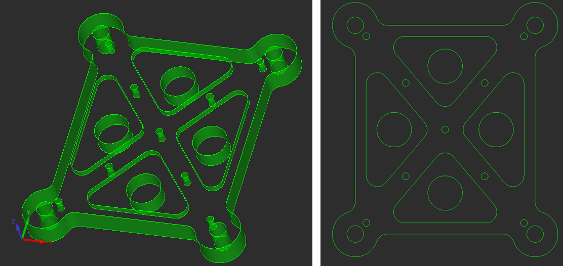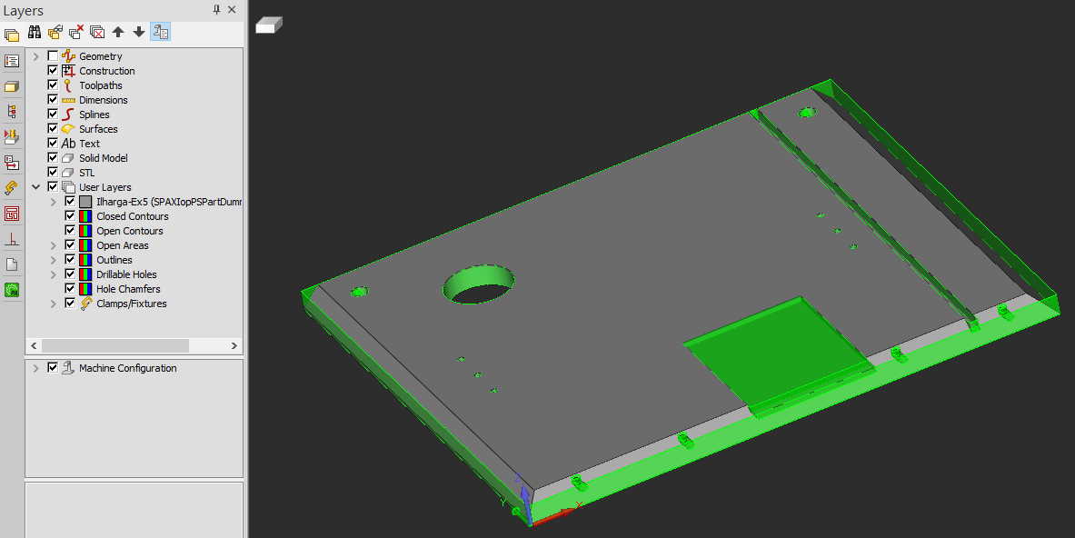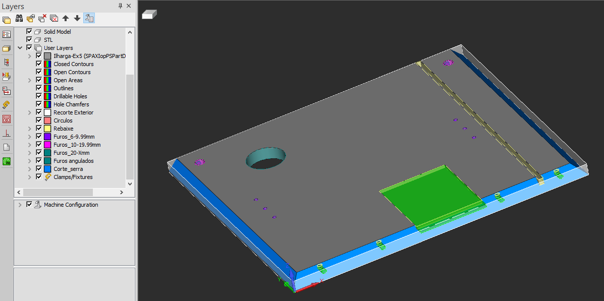 Se pegarmos um desenho ou um sólido com furos, rebaixes, furos cegos, furos vazados, recorte exterior e etc vamos desmembra-los para trabalhar cada pedaço de uma forma, aplicando as maquinações diretamente nas layers, assim sendo, começamos o processo de automatizarmos o ALPHACAM.