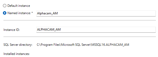 Defina um nome pra instância. No caso, podemos utilizar Alphacam_AM - NEXT
