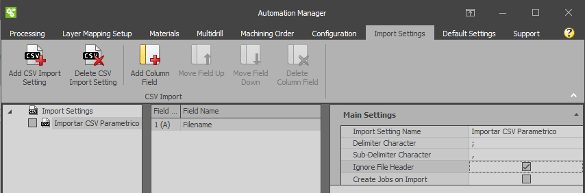 Abra o AUTOMATION MANAGER e vá na guia IMPORT SETTINGS e depois clique em ADD CSV IMPORT SETTING.
